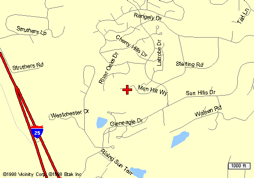 Directions: Exit I-25 at the Gleneagle exit (#156). Go east on North Gate Road about a quarter of a mile. Turn left on Gleneagle Drive (you'll see a bunch of housing tract signs) and follow the road up the hill, through the development and turn left on Mission Hill Way. You'll see the couse along the way, look for the Gleneagle Clubhouse on the left and the Gleneagle sign on one of the housing tract signs.